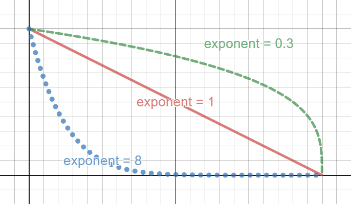 This is a visual representation of how the Intensity Exponent curve works: